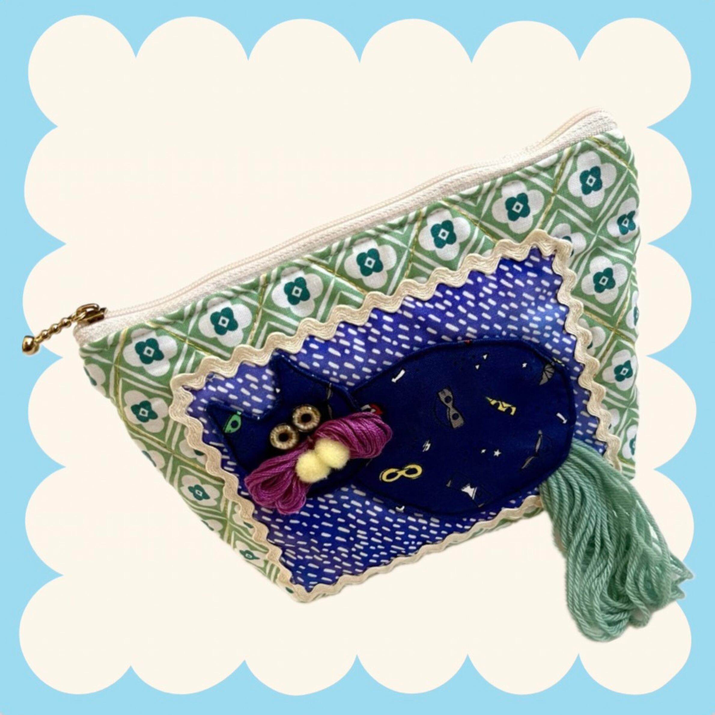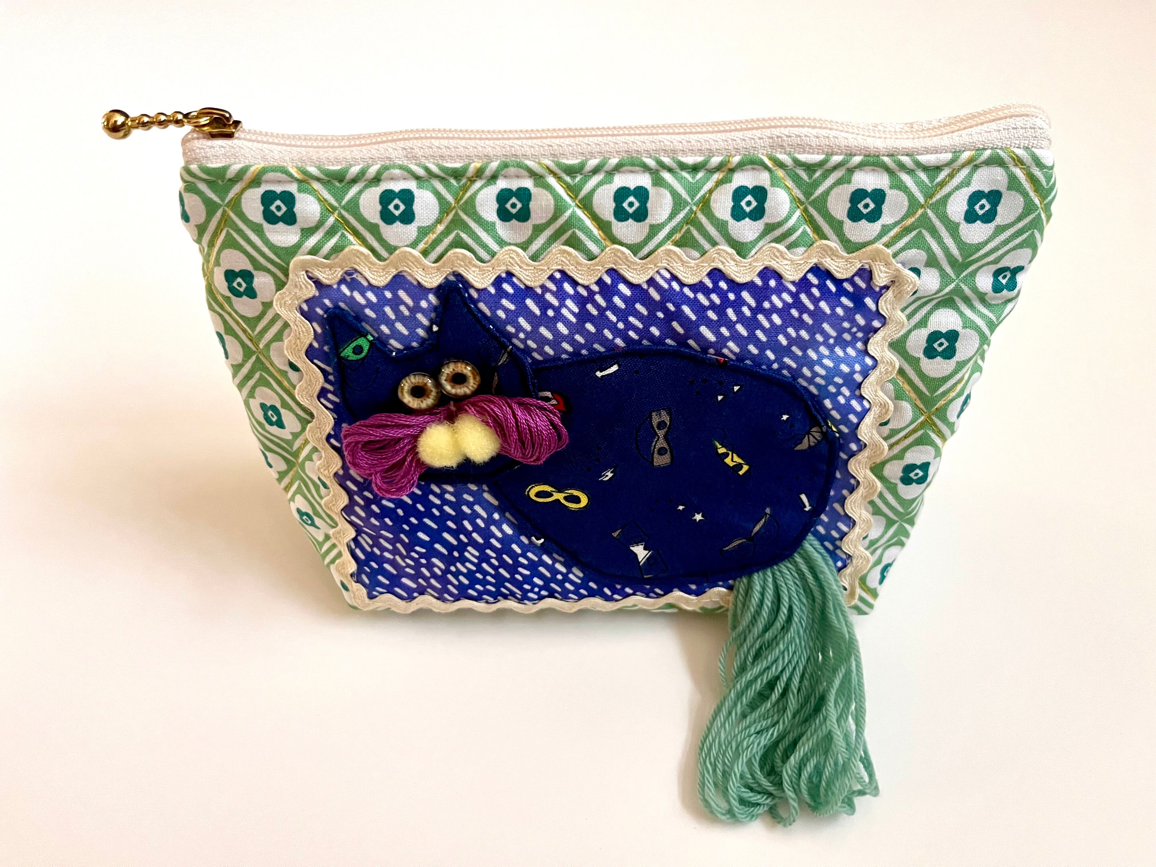 ♡キルティング ポーチ♡ ブルーなねこちゃん
