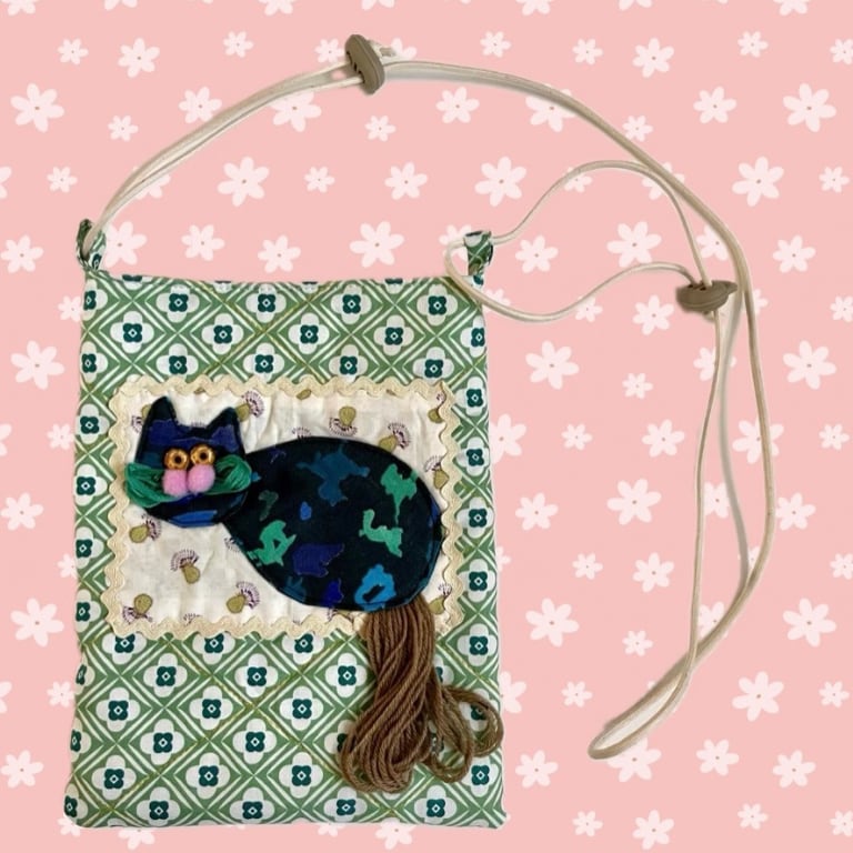 ♡キルティング ポシェット♡ あおまだらのねこちゃん